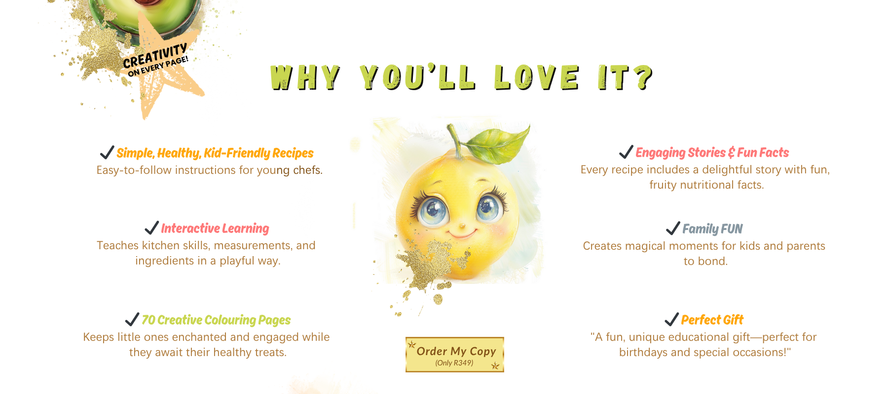 🍑This book is a game-changer! My daughter absolutely loves coloring the pages, and she gets so excited to try the recipes. It's the perfect way to keep her entertained while also learning something new! Plus, I love that the recipes are kid-friendly and healthy.🍑